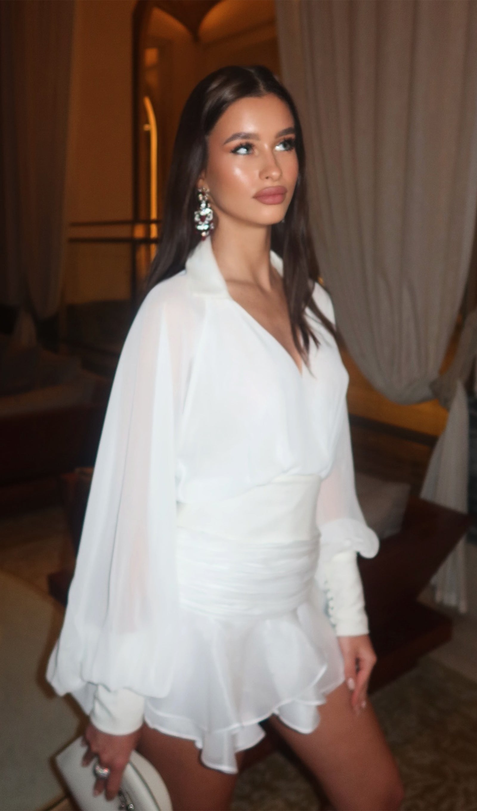 - Dramatic Lantern Sleeves: Adds volume and elegance, creating a striking yet sophisticated silhouette.